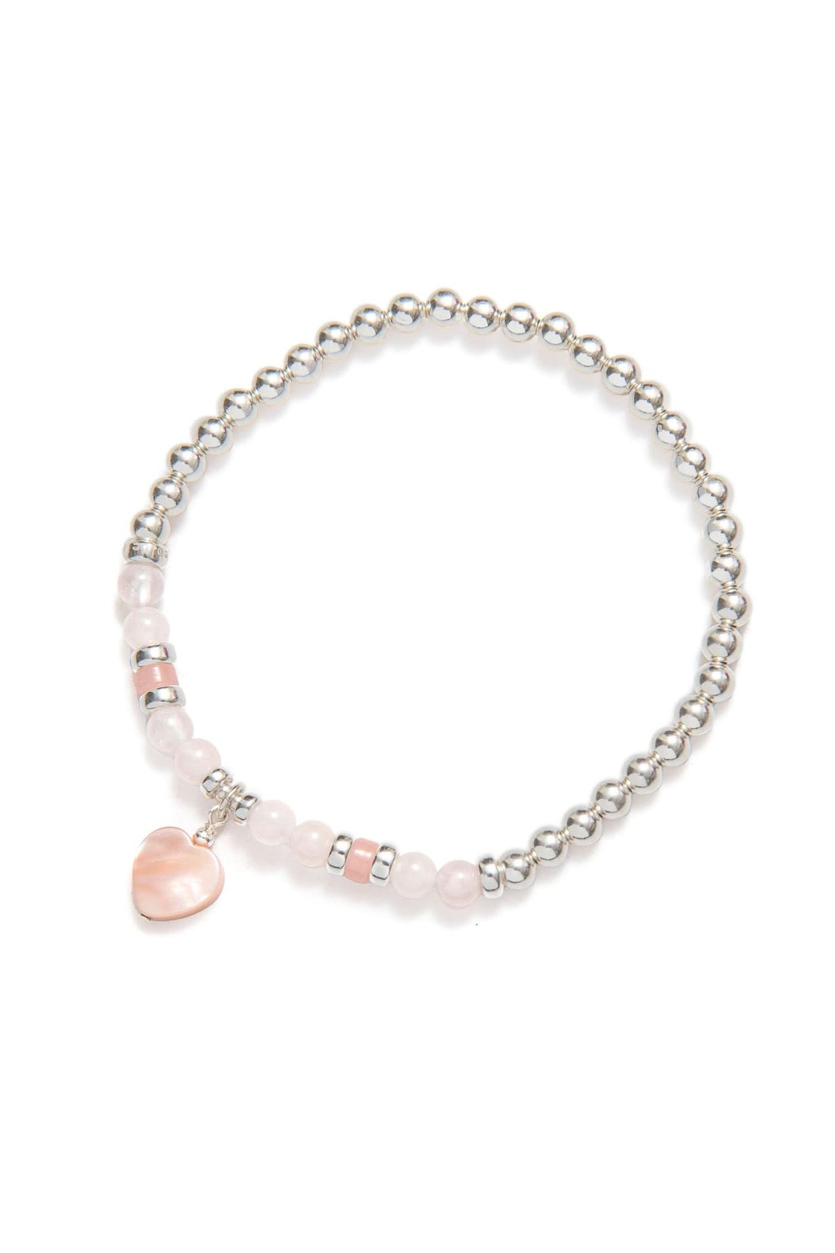 Bracelet Be Kind en Argent Sterling avec breloque cœur en Quartz Rose et détails scintillants.
