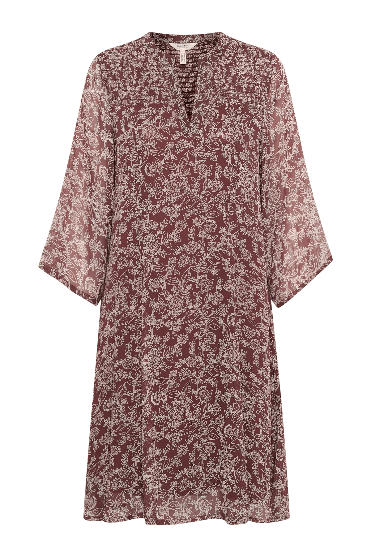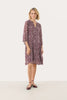 Robe Elka à imprimé délicat, coupe évasée et encolure en V, élégante et féminine, à porter avec bottes ou escarpins.