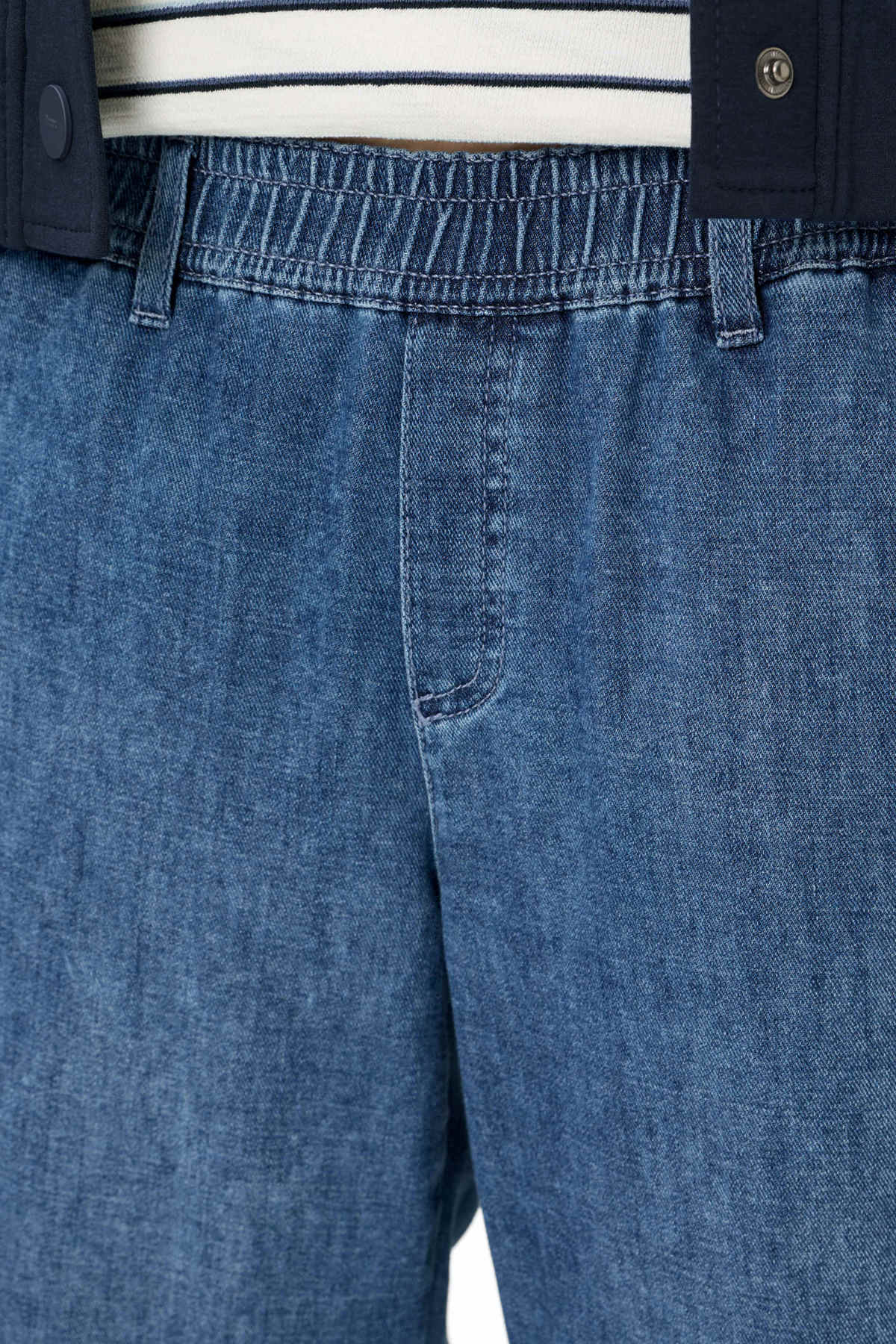 Description : Ce pantalon en denim revisite la silhouette décontractée avec une coupe jambe large moderne et fluide. Sa taille élastique assure un confort optimal tout au long de la journée, tandis que le tissu léger offre une belle liberté de mouvement. Facile à agencer, il se porte aussi bien avec un t-shirt ajusté qu’avec une veste structurée pour un look casual chic parfaitement équilibré.