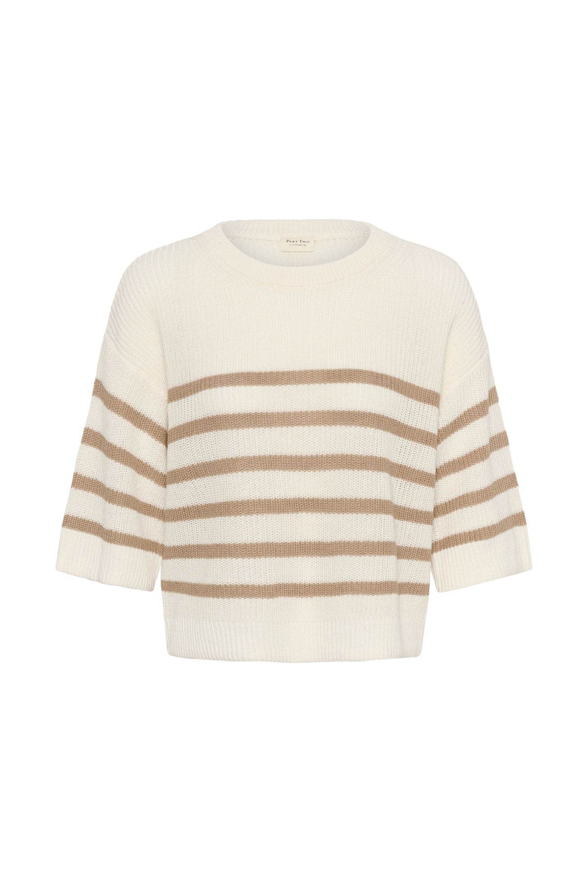 This short-sleeved knit offers a relaxed, contemporary silhouette, ideal for mid-season wear. Its openwork knit gives it a light feel, while the striped pattern adds a timeless graphic touch. Easy to wear every day, it works just as well with a casual outfit as it does with a more polished look.