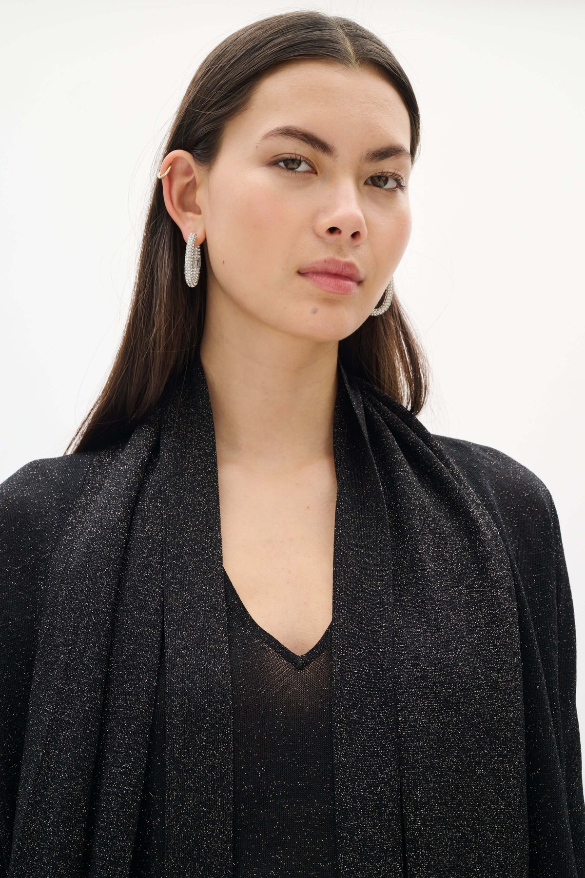 Description: This refined cardigan captivates with its luminous fabric and flowing drape. Featuring a built-in scarf for an extra touch of elegance, it instantly elevates your outfits. Lightweight and comfortable, it is perfect for completing a dressy look or adding a sophisticated note to an evening outfit.