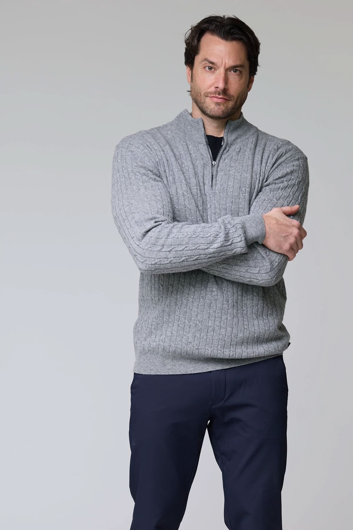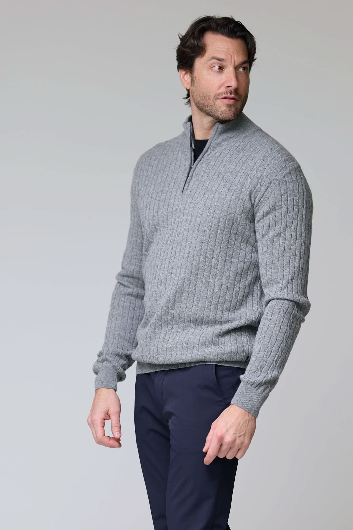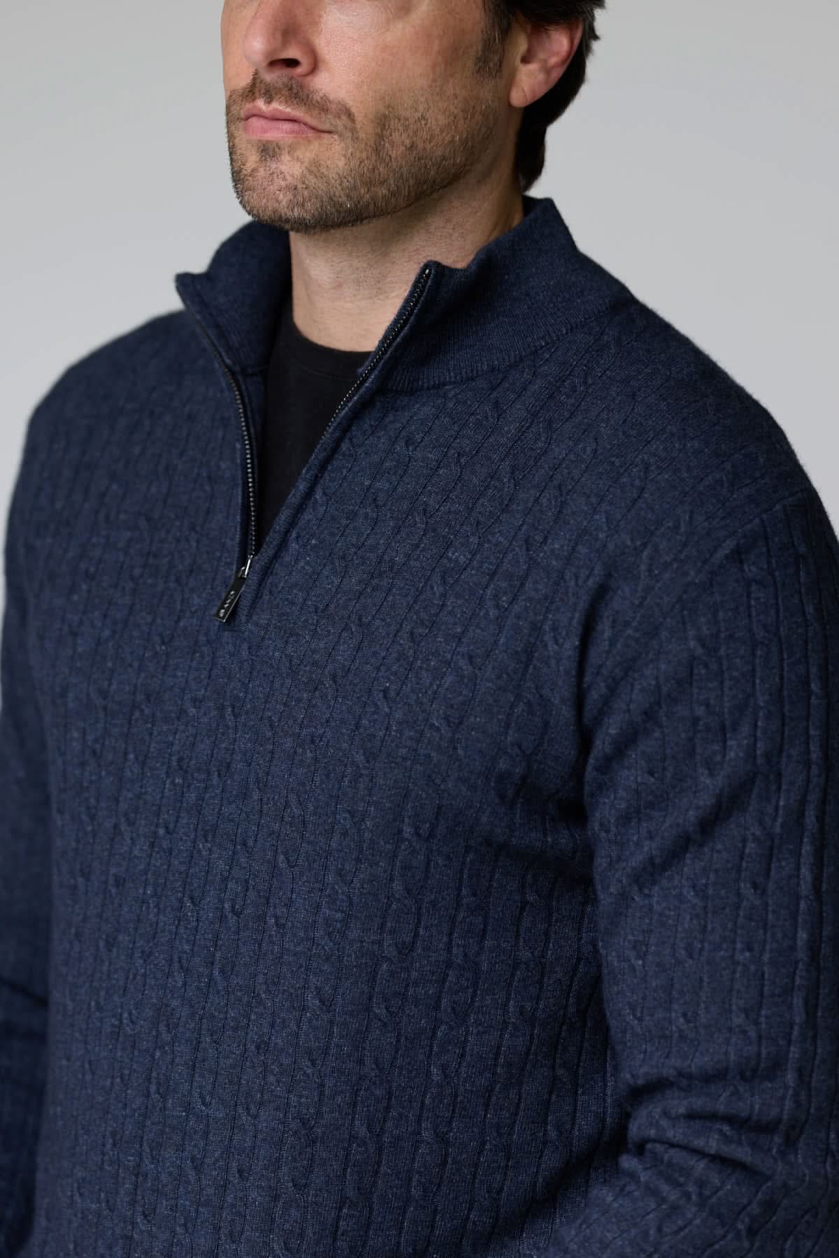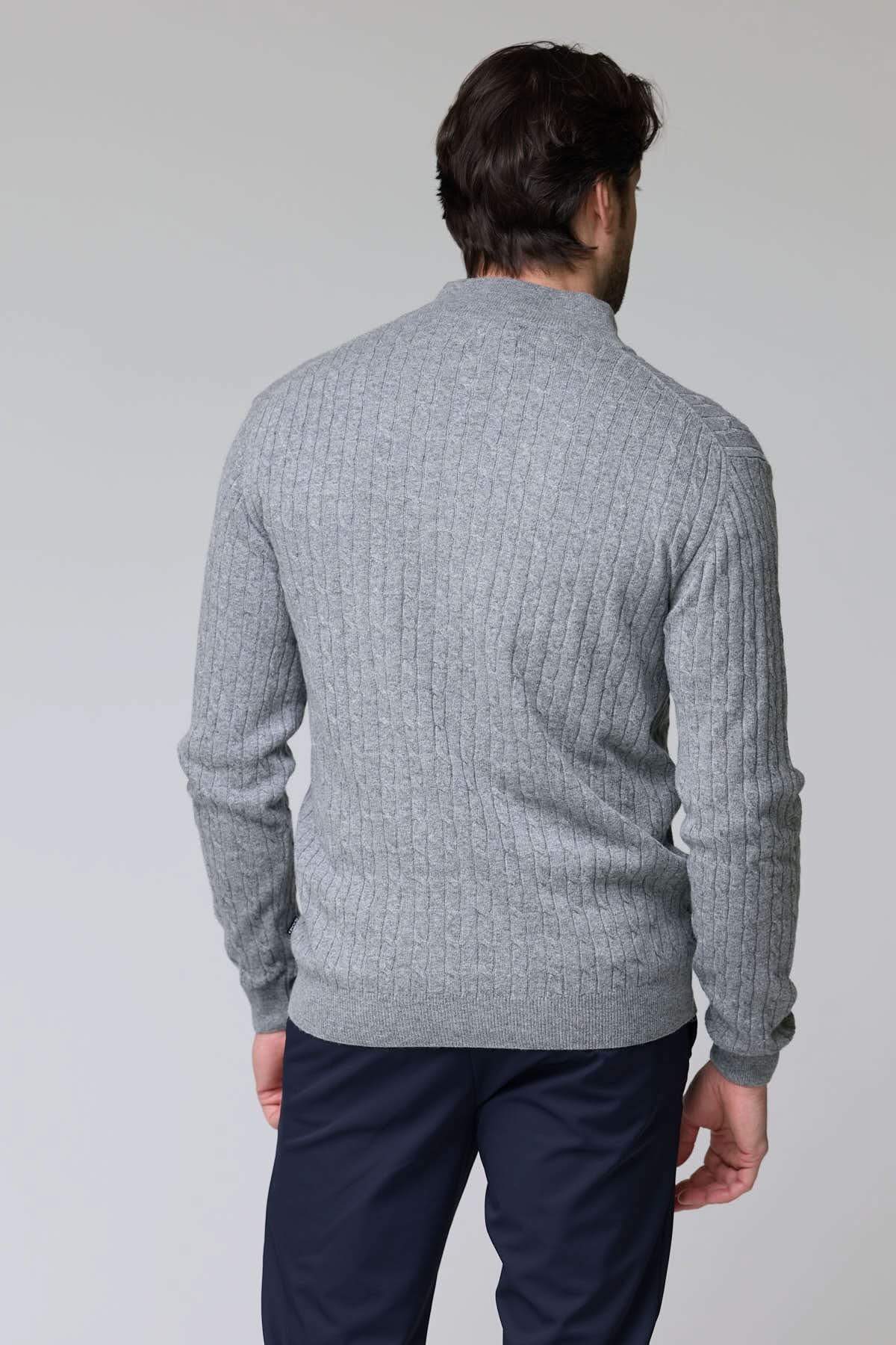 Description: Wool sweater with a half-zip collar, featuring a classic cable knit pattern. Its warm, textured knit offers a look that is both elegant and casual, perfect for cool days.