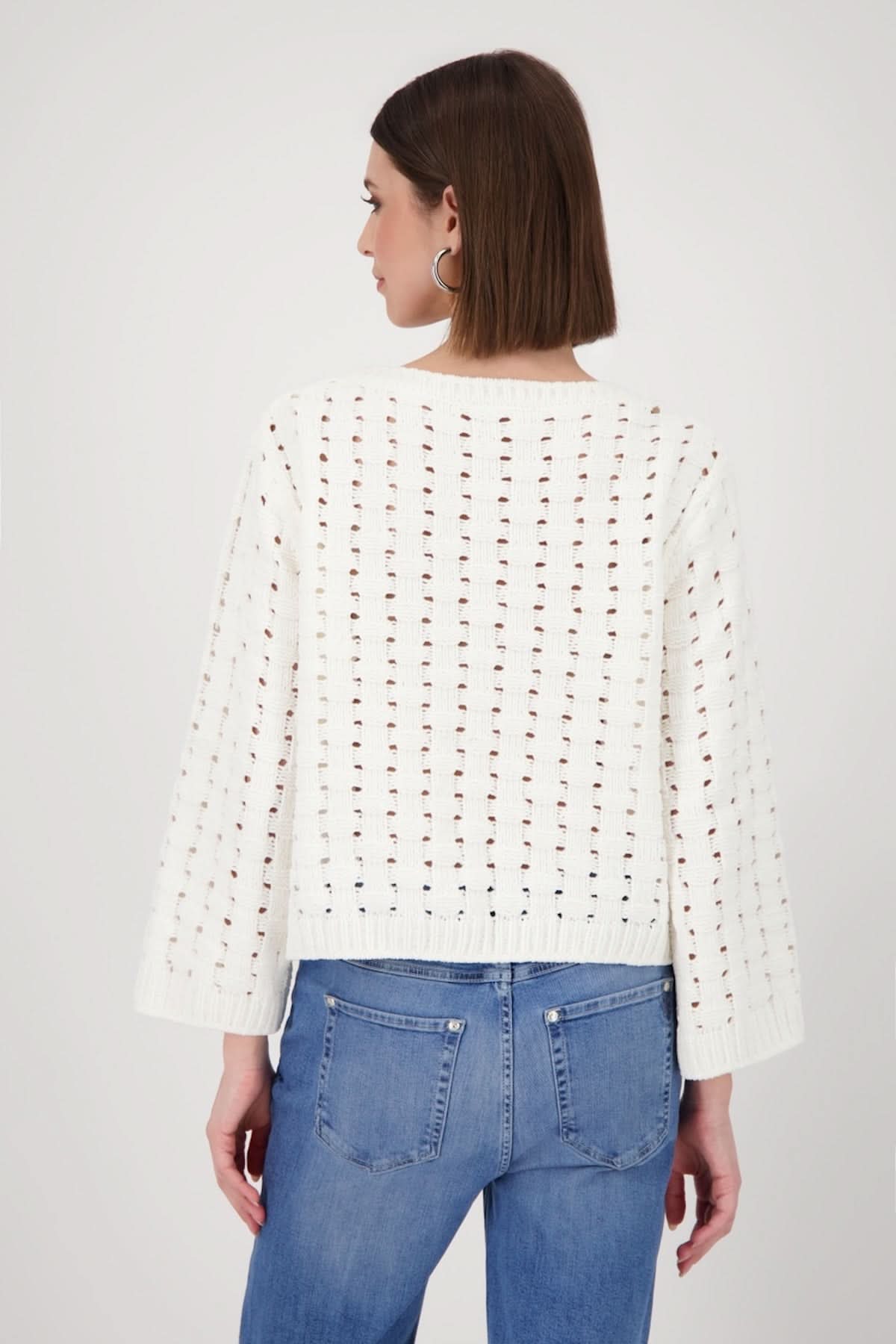 Description: This openwork knit sweater is sure to charm with its delicate, lightweight texture, perfect for a casual, feminine look. Its straight fit and round neckline offer optimal comfort, while the openwork pattern adds a subtle touch of elegance. Style tip: layer it over a tank top or contrasting top to play with sheer effects.