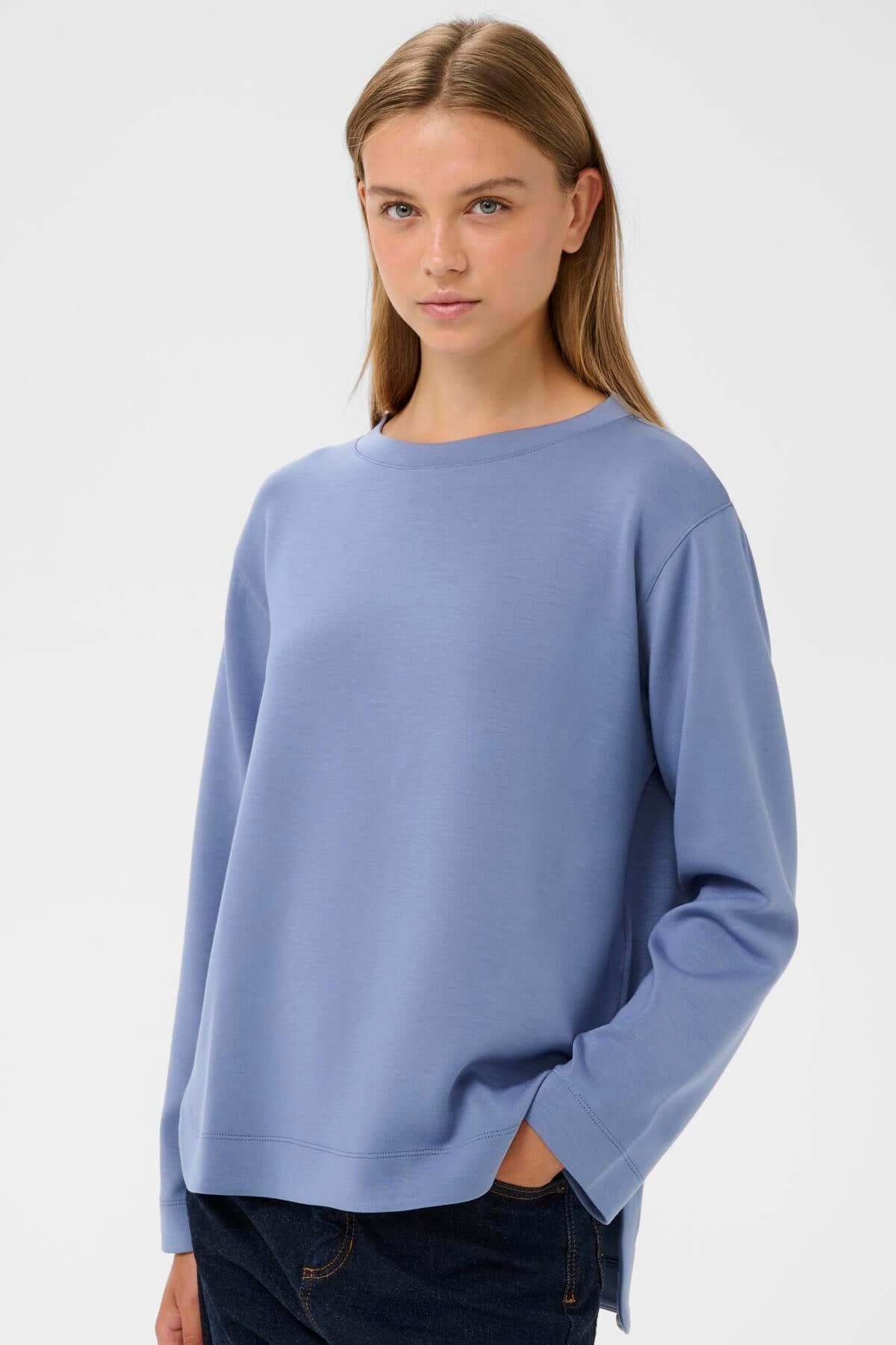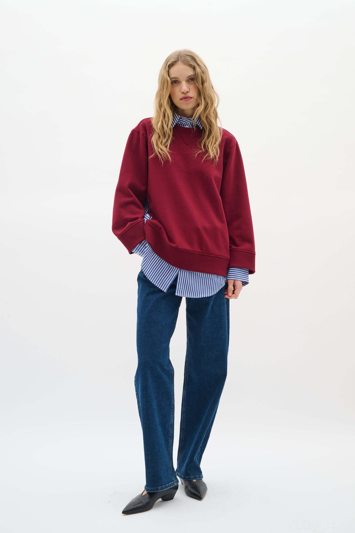 Description : This minimalist long-sleeved sweater features a straight cut and a slightly structured boat neck. Its clean, understated silhouette makes it a versatile piece, ideal for creating comfortable and elegant everyday outfits. Wear it with high-waisted pants or a skirt for an effortlessly refined look.