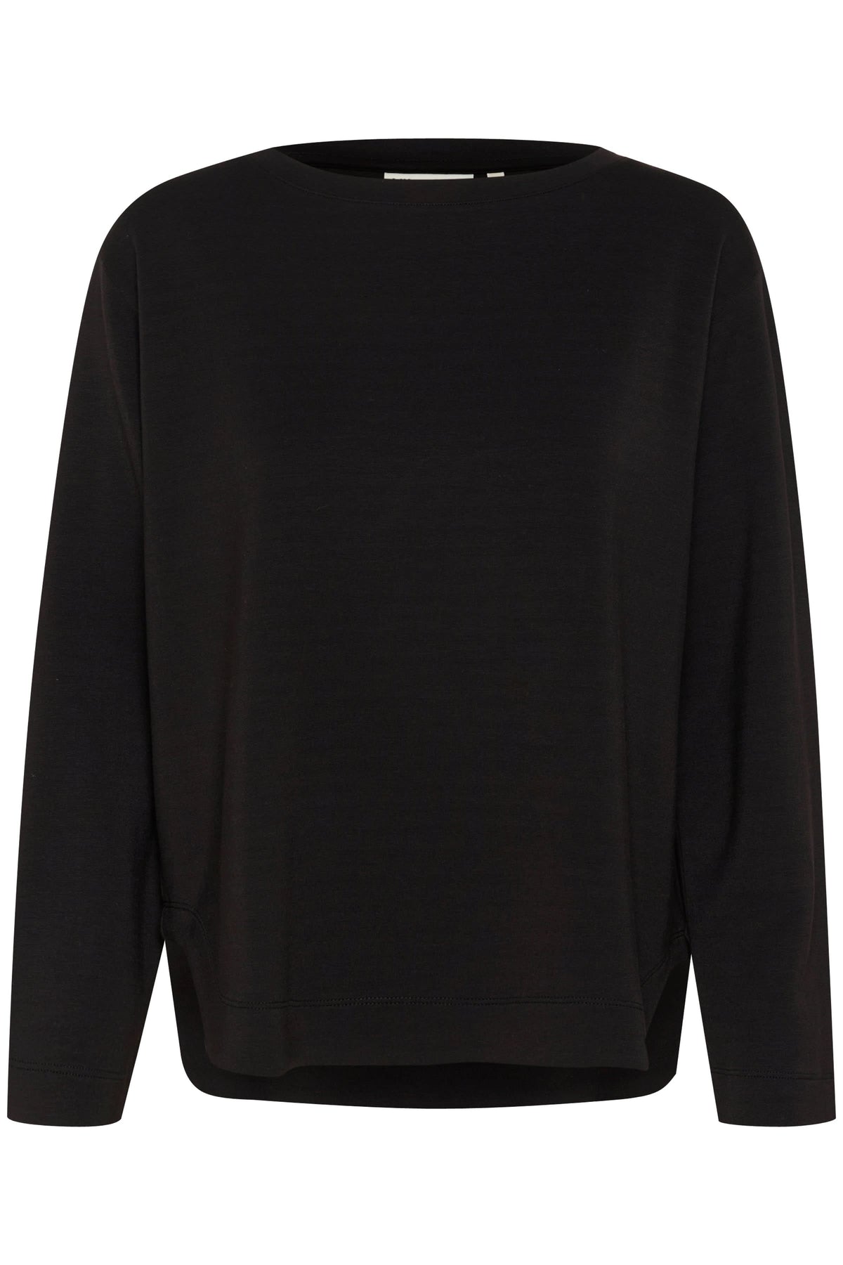 Chandail Gincent noir à manches longues, col bateau, silhouette minimaliste pour un style élégant et confortable.