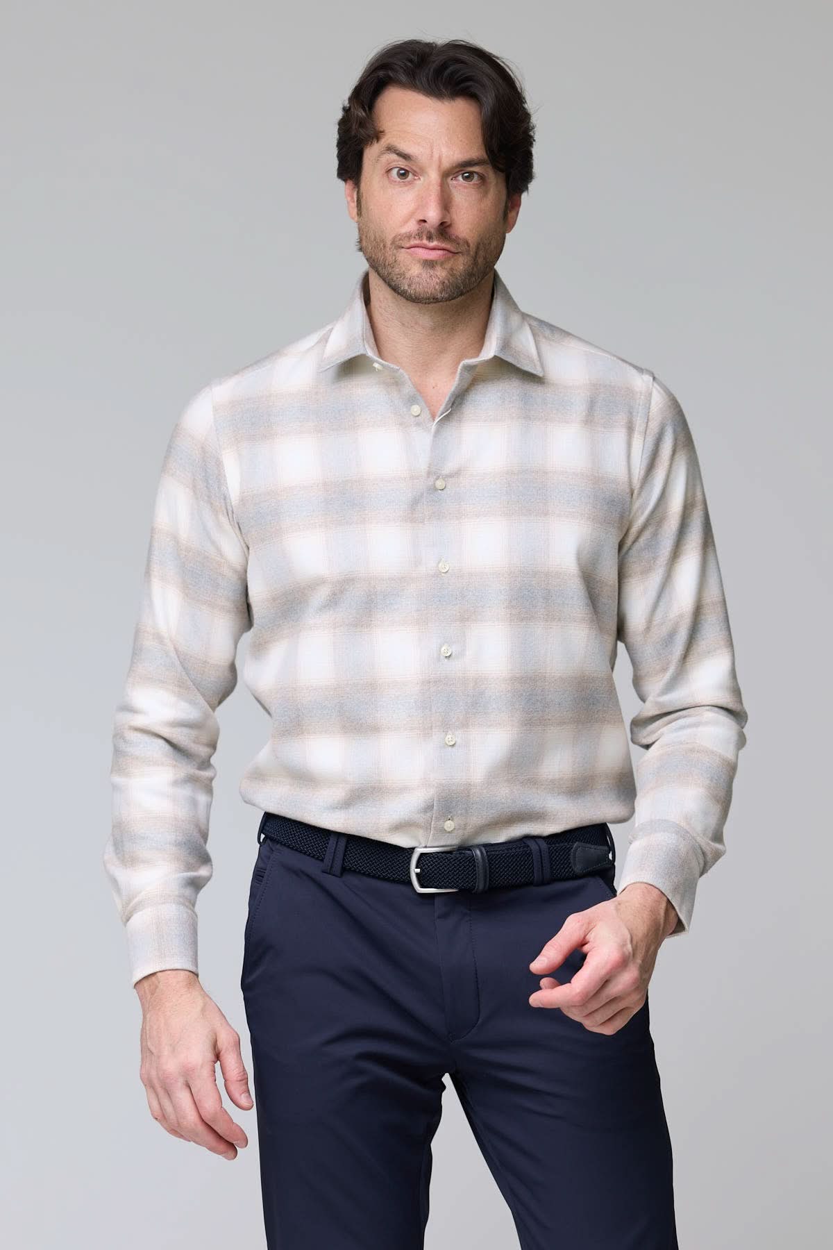Description: Lightweight flannel shirt with a subtle check pattern, combining comfort and casual elegance. Its brushed texture provides a soft feel, ideal for cool days or layering under a jacket.