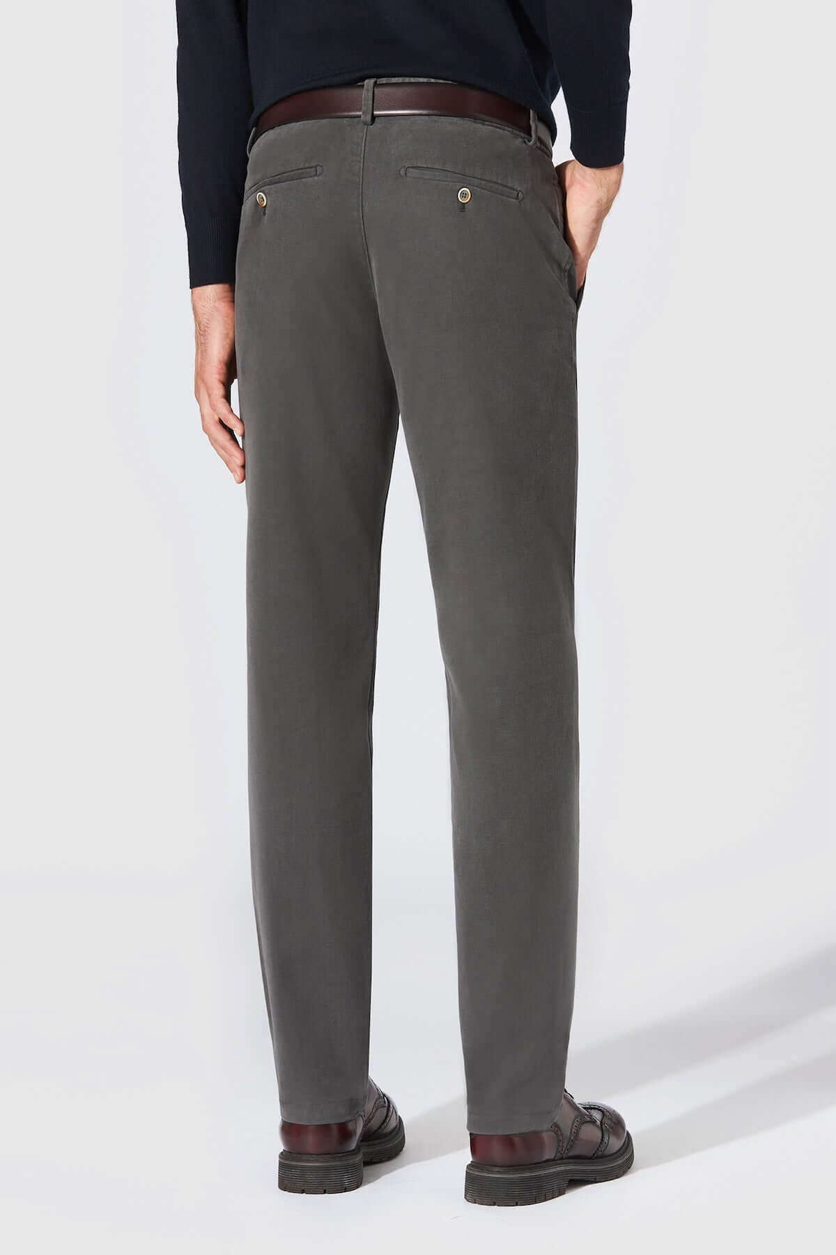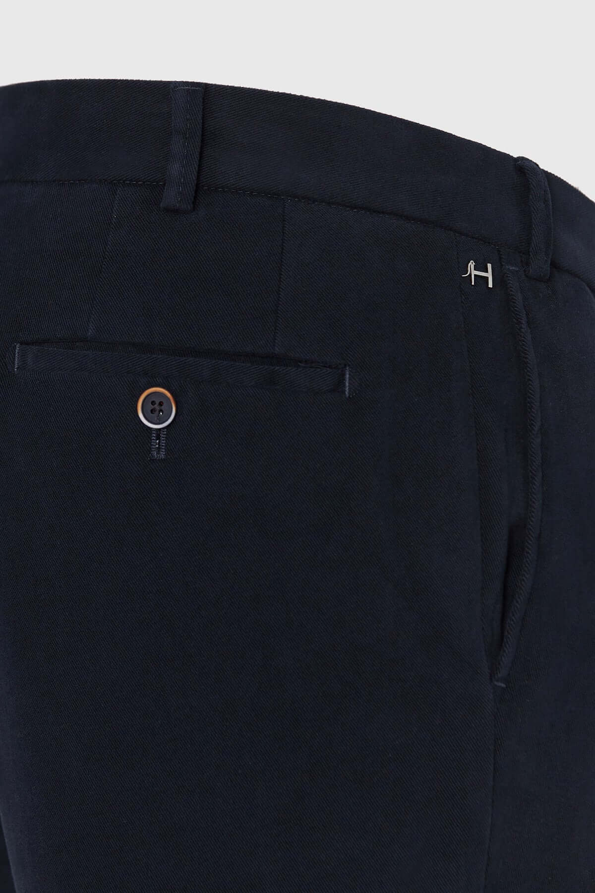 Description: HILTL's Trento pants embody casual elegance at its finest. Crafted from soft cotton twill with a refined diagonal texture, they offer impeccable fit and remarkable comfort thanks to a touch of elastane. Their slim fit and elasticated waistband at the back ensure a perfect fit, ideal for workdays or semi-formal occasions. A modern essential that combines distinction and comfort for everyday wear.