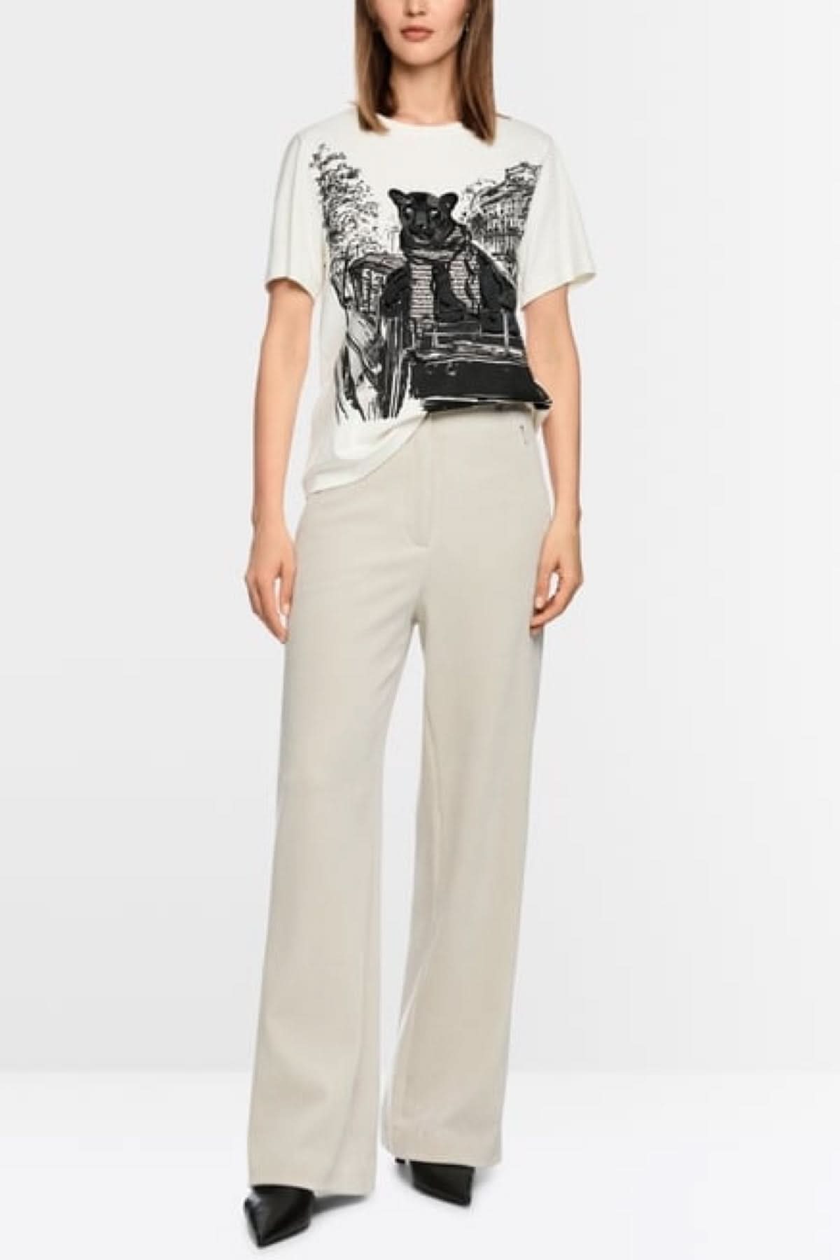 Description: Women's T-shirt made from a high-quality blend of materials including recycled viscose. The finely structured panther pattern with delicate sequins on the upper part gives this T-shirt an elegant and sophisticated look. This model is finished in Germany.