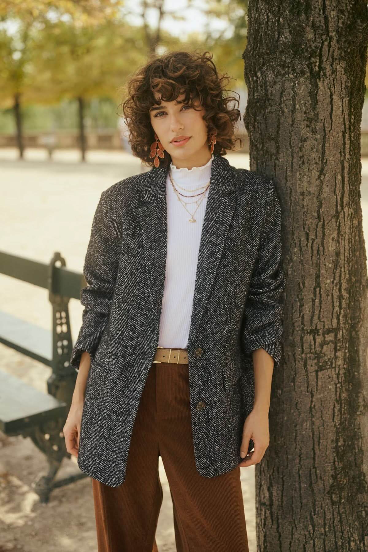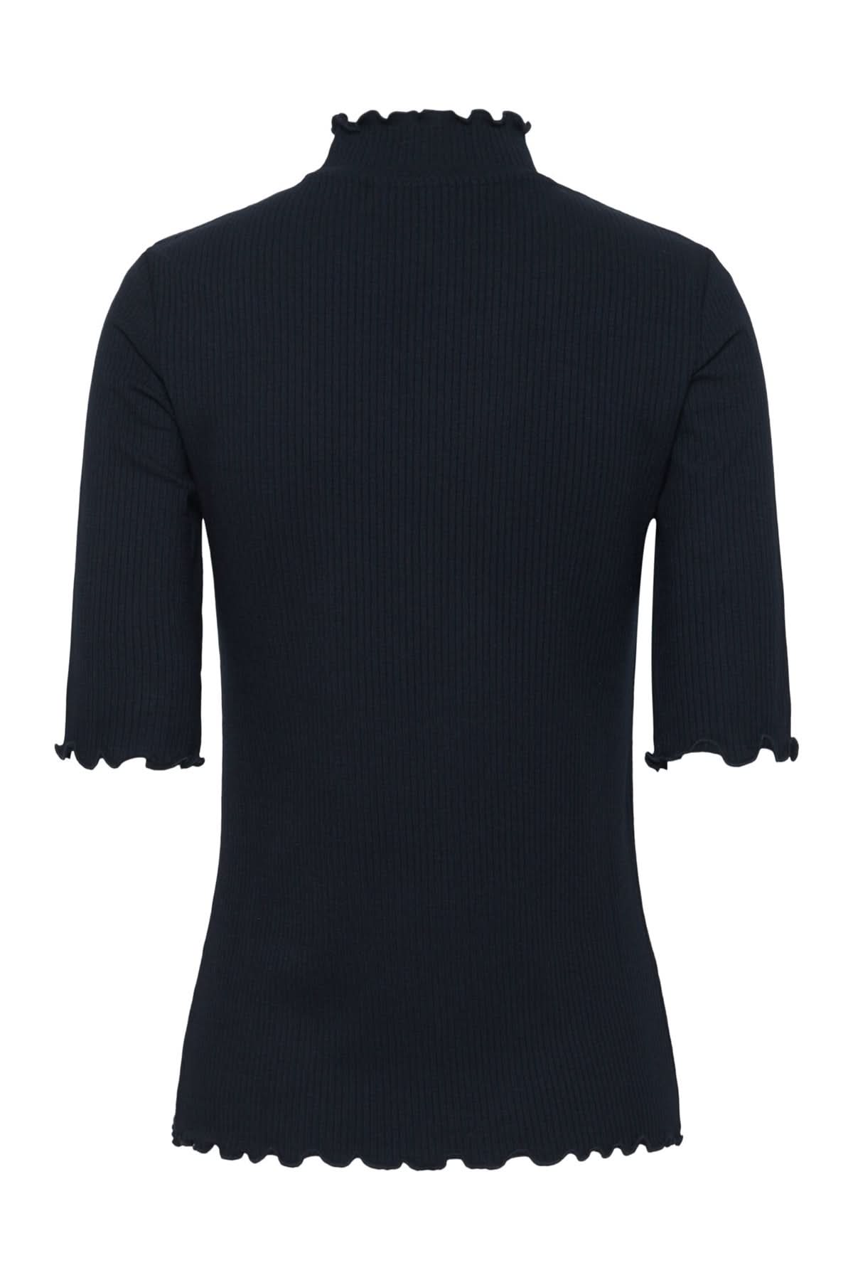 Description: This high-neck T-shirt is appealing thanks to its ribbed knit and delicate scalloped trim. Its fitted cut flatters the figure while remaining comfortable. A feminine and versatile piece, ideal for both formal wear and a chic casual look.