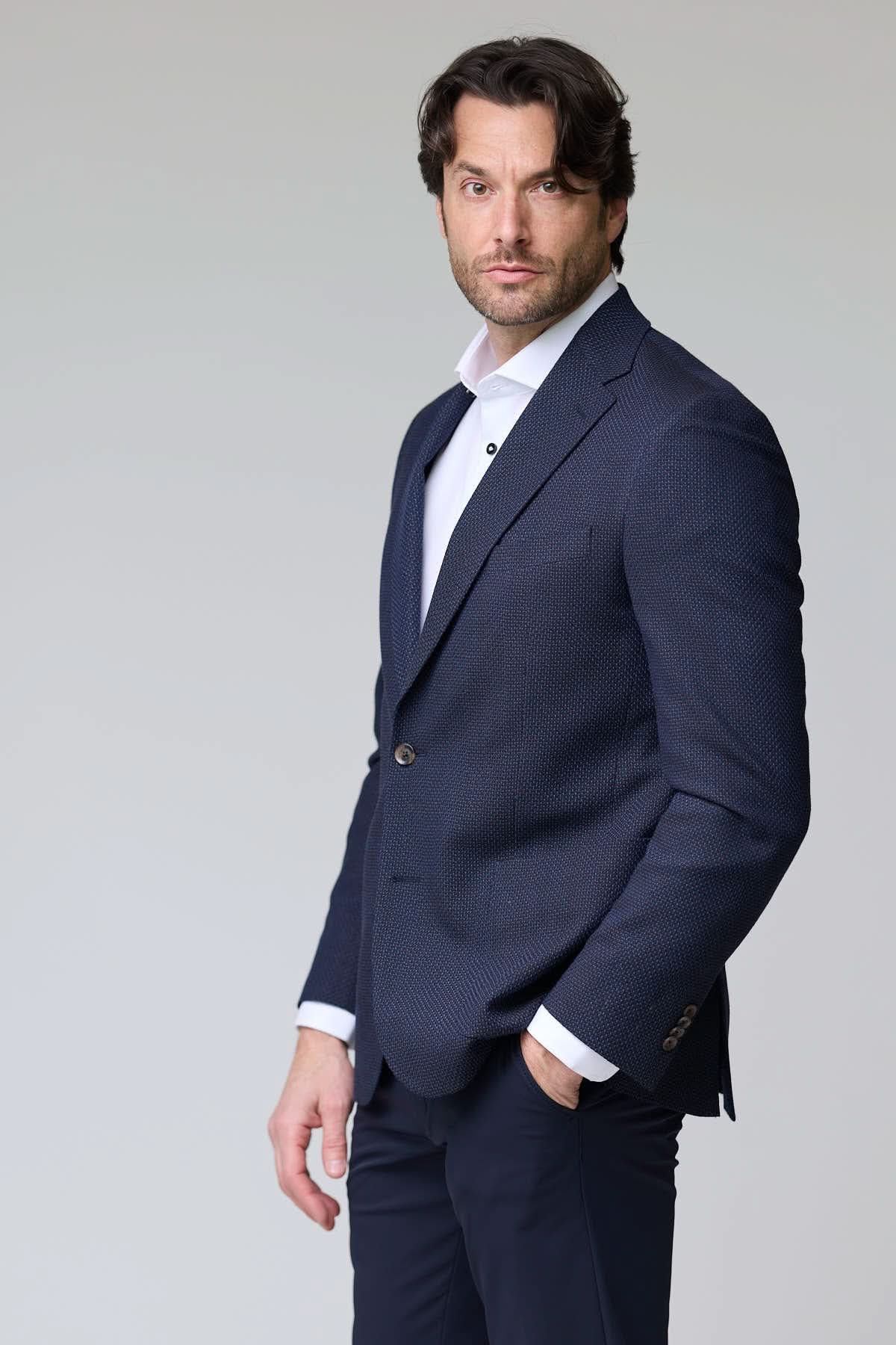 Description: This textured blazer combines elegance and comfort thanks to its soft, structured knit. Its modern two-button Fit offers a balanced silhouette, perfect for the office or formal occasions. Its versatile design allows it to be worn with a classic shirt or a turtleneck for a contemporary look.