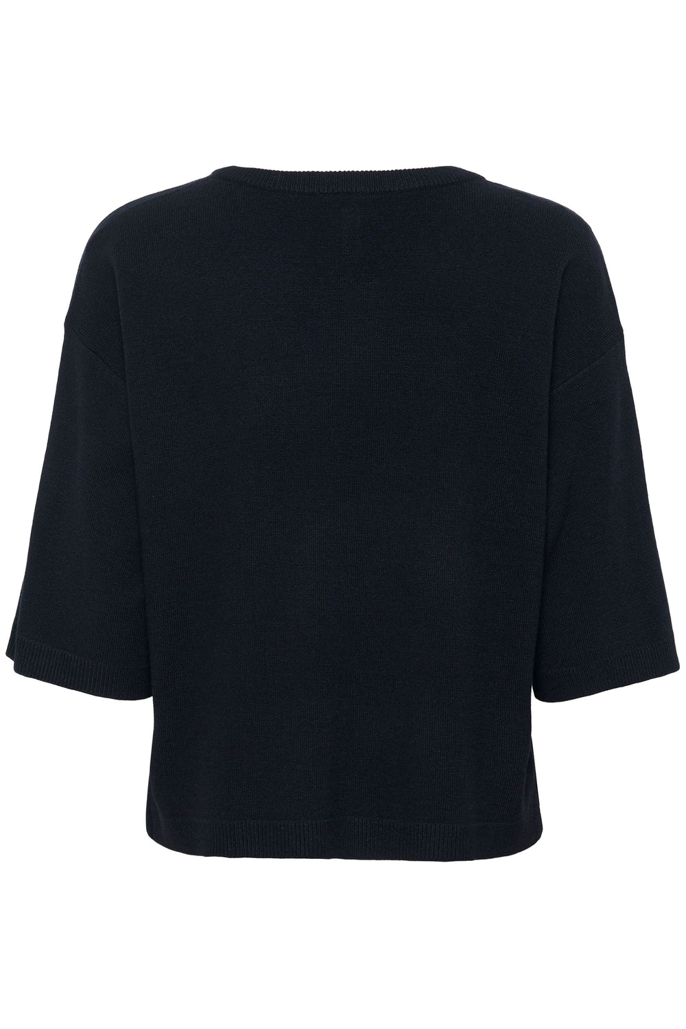 Description : Ce chandail en tricot mise sur la simplicité et le confort. Sa coupe légèrement ample et ses manches courtes en font une pièce idéale pour superposer ou porter seule. Le détail en V discret à l’encolure ajoute une touche décontractée, parfaite pour un style minimaliste et élégant. À porter avec un pantalon tailleur ou une jupe midi pour un look chic sans effort.
