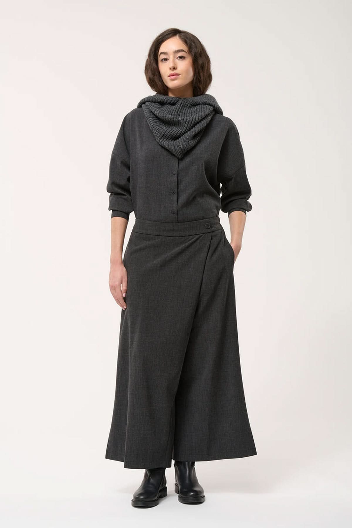Description : Ce pantalon large revisite les codes du style contemporain avec une coupe fluide et un tombé impeccable. Son effet portefeuille à la taille apporte une touche d’originalité tout en allongeant la silhouette. À associer avec un haut ajusté ou une chemise pour un look élégant et décontracté à la fois.