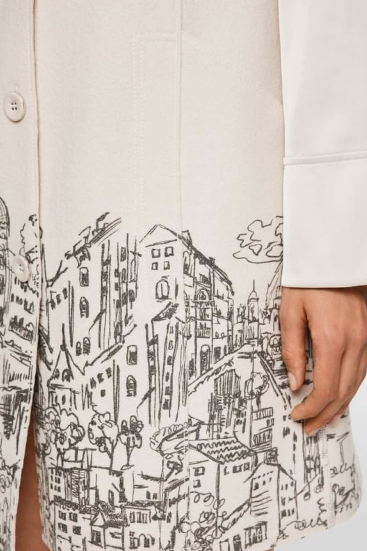 Description : Robe sans manches en laine 100 % vierge, légèrement évasée. L'imprimé urbain placé sur le devant, à l'aspect artistique, rend ce modèle unique. Patte de boutonnage sur le devant, sans doublure pour une légèreté naturelle. Ce modèle est tricoté et fini en Allemagne. La finition des différentes pièces est réalisée dans des entreprises partenaires européennes. La robe est donc « Knitted in Germany ».